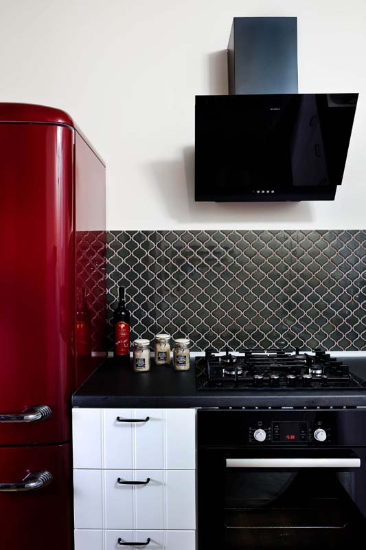Aby złagodzić intensywność bordowego koloru, warto łączyć go z neutralnymi barwami, takimi jak biel, szarość czy beż. Neutralne kolory działają jak tło, które równoważy i łagodzi mocne odcienie bordo, tworząc harmonijną i elegancką przestrzeń. Przykładowo, bordowe płytki można zestawić z jasnymi ścianami i meblami, co podkreśli ich wyrafinowany charakter, jednocześnie nie przytłaczając wnętrza.