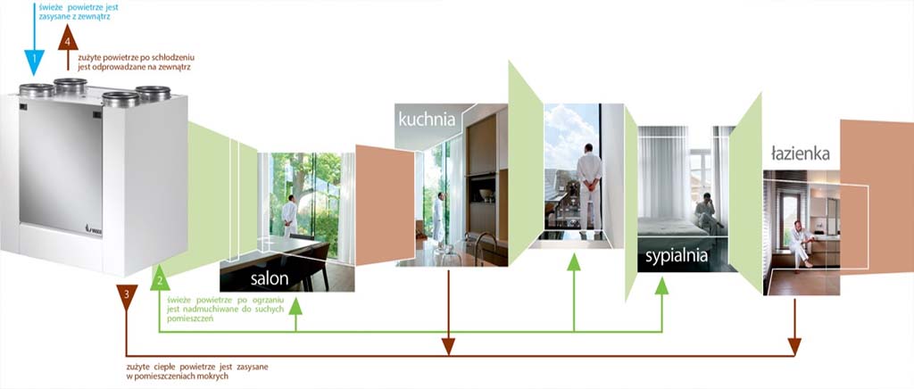 Rekuperacja wpisana w projekt radykalnie poprawia wskaźniki energetyczne budynku. Kiedyś budowało się domy bez systemów wentylacji, rekuperacji i nikomu to nie przeszkadzało, bo mieliśmy po prostu kratki w łazienkach, kuchniach i nieszczelne okna. Wtedy to działało. Ile to kosztowało, nikogo to nie interesowało. Ale czasy się całkowicie zmieniły. Technologia się zmieniła, oczekiwania ludzi się zmieniły. Teraz budujemy szczelne domy. Okna mogą być szczelne całkowicie, można je oczywiście rozszczelnić, można zakładać nawietrzaki i wpuszczać mroźne powietrze zimą bezpośrednio do domu, narażając się na dyskomfort, straty energii, której używamy do ogrzewania domów. Jeśli ktoś latem ma klimatyzację, to także będzie tracił chłód wietrząc. Bo musimy wietrzyć domy. Nie możemy się zamknąć w szczelnym domu. Potrzebujemy oddychać świeżym powietrzem i do tego właśnie jest potrzebna wentylacja mechaniczna.